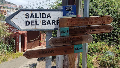 En este cruce se produjo una confusión por mi parte por no interpretar bien las señales,le preguntamos a un chico que venía por el camino a Teror, pero el error fue que nosotros no íbamos a Teror casco urbano sino a Fuente Agria por Puente del Molino, y siguiendo las indicaciones del pive, nos metimos por la carretera que va a Teror.