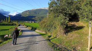 Dos horas y media en guagua hasta Jaca, con sol y despejado pero a medida que nos acercábamos a la población, aparecieron nubarrones muy negros de mal presagio, pero perro ladrador poco mordedor. En Jaca estamos puntuales a las 11:00, ya era hora de tomar algo. No se puede estar todo un día con un plátano y un yogur. Esperando la salida de la guagua para Somport desayunamos en Jaca en una pastelería de la plaza dos chapatas dulces con jamón serrano y queso y una de jamón York y queso partido a la mitad con un café con leche y andando para la estación.