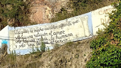 Después de una siesta reponedora y de registrarnos en el hostal, a eso de las 6 de la tarde nos fuimos a dar una vuelta por el pueblo porque es tarde de fiesta en el pueblo con una carpa cerca de la plaza de la iglesia donde había un espectáculo de jotas, también una tómbola y una cantina de feria, ¡vamos un puesto donde vendían churros!; pues para el nos fuimos zumbando porque por 4€ te ponen un cartucho lleno de churros con azúcar, y continuamos vagueando por el pueblo hasta que vimos que había un pequeño sendero pero muy bonito, pero no adelantemos acontecimientos.